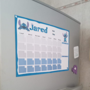 Calendario imantado personalizado tamaño 25 × 35 cm, ideal para organizar tu mes desde la heladera. Reutilizable, práctico y con marcador incluido para escribir y borrar fácilmente.
